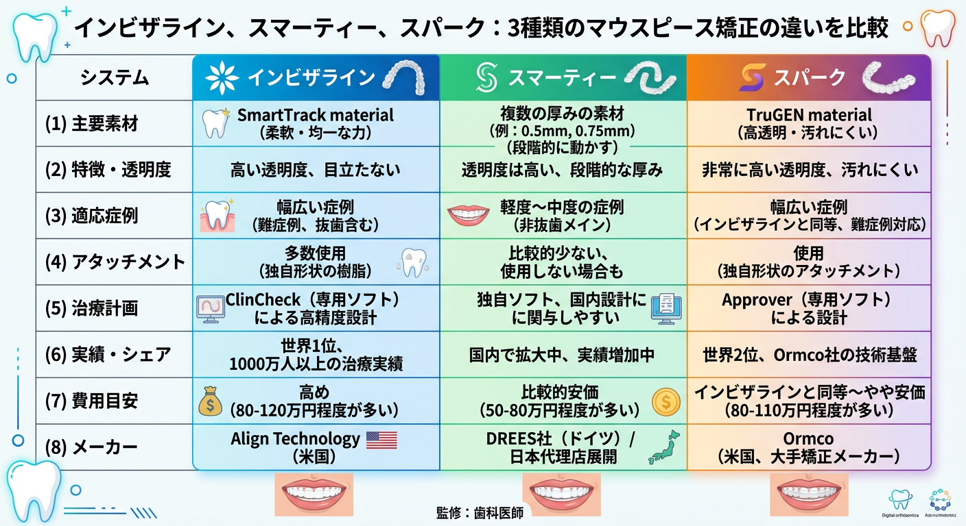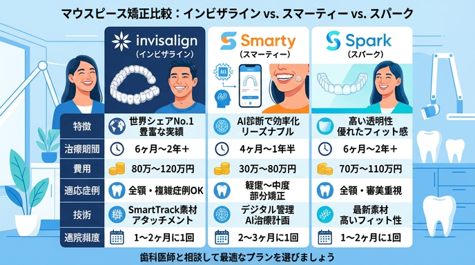 インビザライン・スマーティー・スパークの特徴を徹底比較